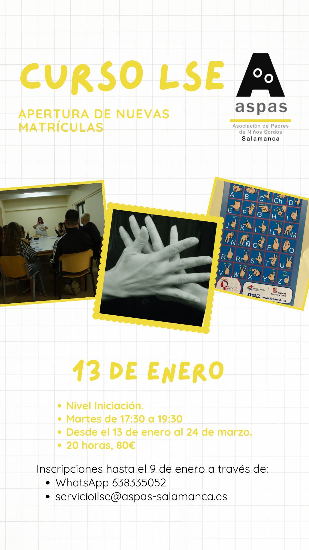 La Asociación de Padres de Niños Sordos de Salamanca (ASPAS Salamanca) anuncia la apertura de inscripciones para su nuevo curso de Lengua de Signos Española (LSE), que dará comienzo el 13 de enero de 2026.